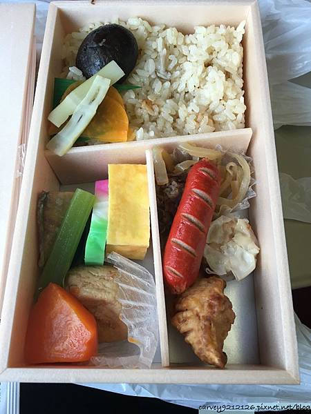 因為確信我們中途會餓死(xD) 所以在上車前就在金澤駅的Heart-in便利店買了兩個駅弁一邊看著車外風光一邊吃
