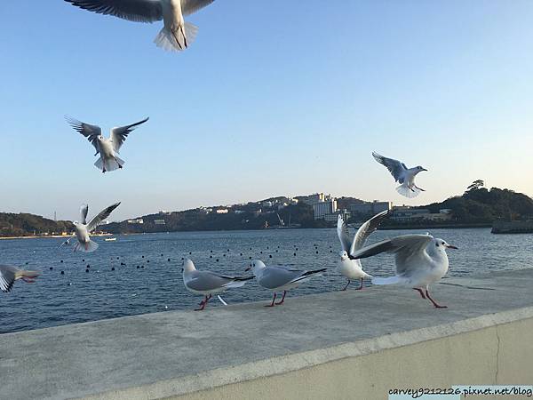 然後到外面的佐田浜東公園看一下海岸風景,剛好看到有人在餵海鳥xDD
